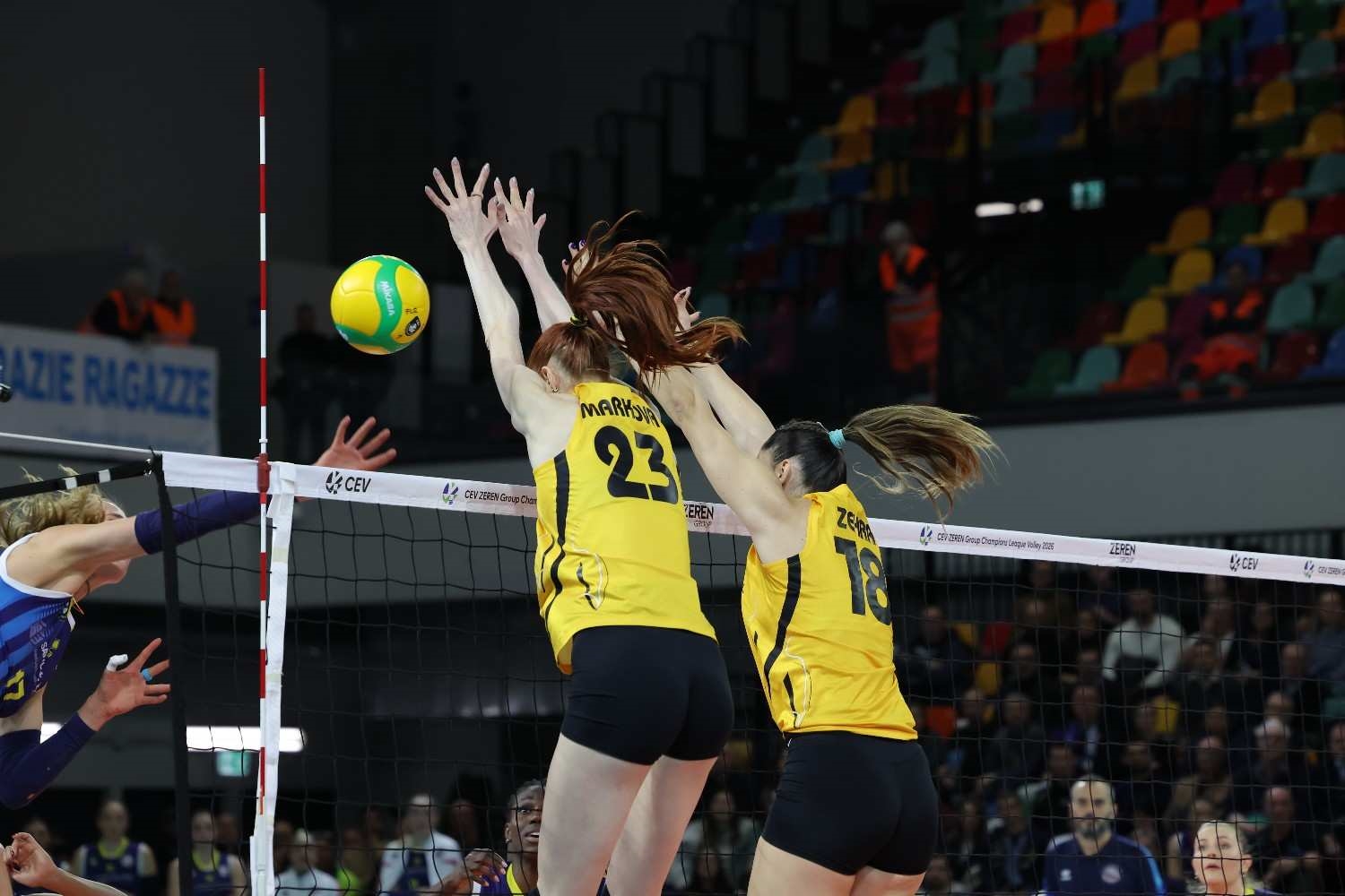 VakıfBank continues its unbeaten run in the Zeren Group CEV Champions League. The yellow and blacks defeated Savino Del Bene Scandicci 3-1 in Italy, making it three wins out of three. VakıfBank, the most successful team in the competition with six titles, took the lead in Group A after defeating Scandicci. At VakıfBank, Tijana Boskovic scored 24 points, Marina Markova 21, Helena Cazaute 11, and captain Zehra Güneş 10, all contributing double-digit scores.