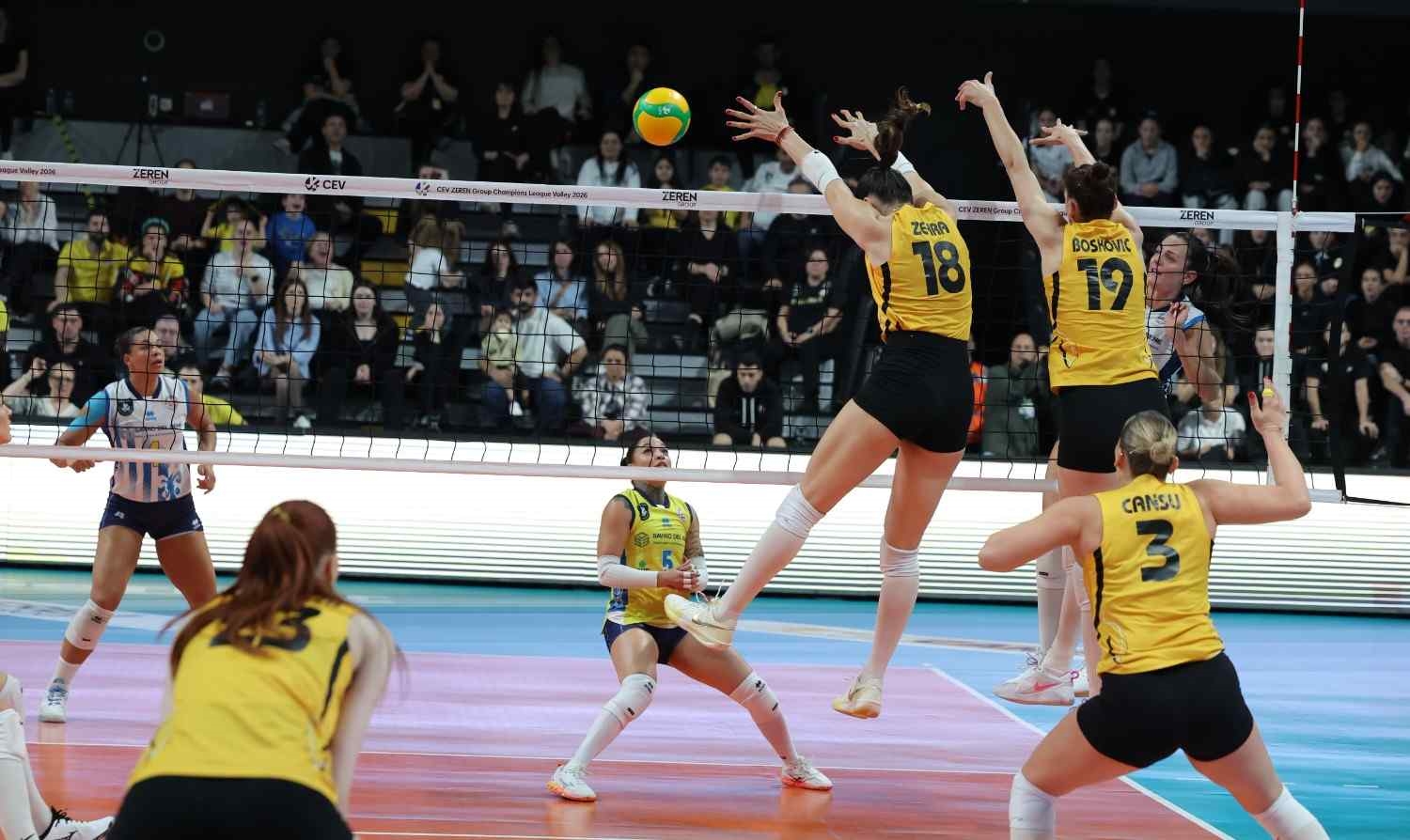 VakıfBank, 6 kez şampiyon olduğu Zeren Group CEV Şampiyonlar Ligi’nde A Grubu’nu namağlup zirvede tamamladı ve çeyrek finale yükseldi. Gruptaki 6. ve son maçında Savino Del Bene Scandicci ile VakıfBank Spor Sarayı’nda karşılaşan sarı siyahlılar, 2-0 geriye düştüğü maçta kusursuz bir geri dönüşe imza atarak rakibini 3-2 mağlup etti. VakıfBank’ta Marina Markova 32, Tijana Boskovic 22 sayı sayıyla çift haneli skor katkısı verdi. Kaptan Zehra Güneş 17 sayının yanı sıra 8 sayıyla rakibine duvar ördü ve karşılaşmanın en değerli oyuncusu seçildi.